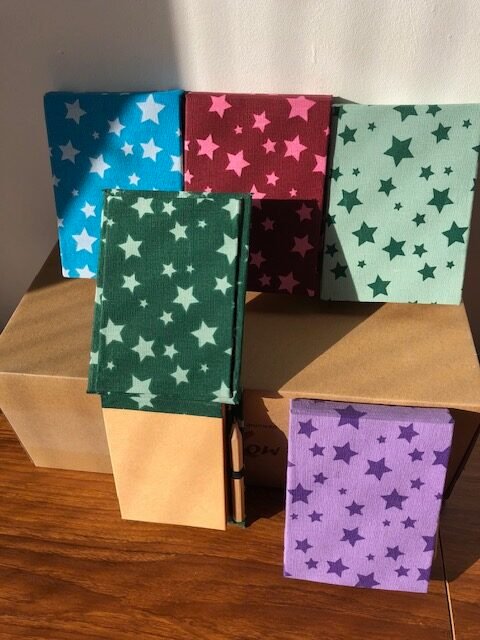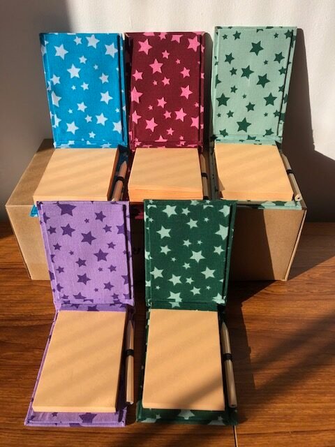 These are Star design cotton covered note pads including a HB pencil and approximately 40 sheets of paper. Which can be used to make notes on artistic views or basic shopping lists etc.